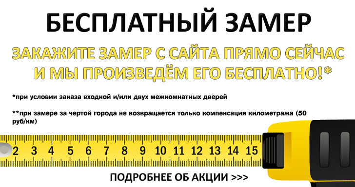 *Стоимость замера до 5 проемов - 1000 рублей, свыше 5 проемов - 1400 рублей. При оформлении договора на приобретение продукции стоимость замера возвращается клиенту. Результаты замера являются собственностью компании. Замеры клиенту передаются в салоне при оформлении договора.