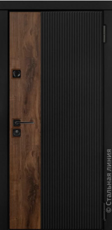 - Цвет и форма наружнего покрытияЭкошпон Premium, цвет «Дуб королевский», рис. CG.10 + декоративная вставка, SteelLak структурный, цвет «Черный RAL 9005»