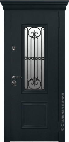 - Цвет и форма наружнего покрытияПолимерное покрытие «Муар», цвет «Сапфир» + стеклопакет (окно B) + решетка, цвет "Черный", патина, цвет "Серебро" + багет ZN-L2 + портал ZN-1