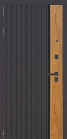 - Цвет и форма наружнего покрытияфрезерованная МДФ панель 10 мм, цвет "Черная шагрень" + декоративная вставка, цвет "Орех каньон коньяк"